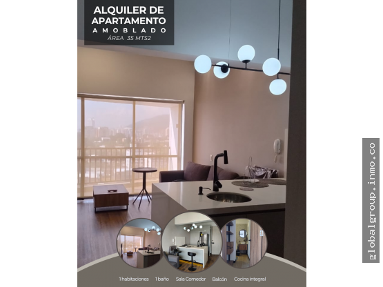 Se arrienda apartaestudio de 35 mts2 en el norte de Cali, en conjunto Cerrado, amoblado. Consta de sala-comedor, balcón, cocina tipo americana, zona de ropas, vestier y baño. El apartamento cuenta con aire acondicionado y calentador. El Conjunto además cuenta con zonas comunes como piscina, gym, zona de lavandera, salón social, terraza, zona de entrenamiento.