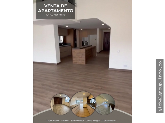 Se vende apartamento al oeste de Cali. 283 mts2 inmueble de dos niveles y un altillo. Sala, comedor, cocina integral, 3 habitaciones, 4 baños, balcón y terraza. Parqueadero lineal en sótano