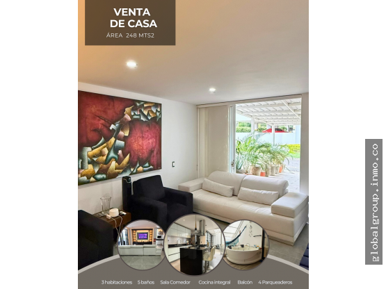 Se vende casa en Ciudad Jardín. 192.60 mts2 consta de sala, comedor, cocina integral, patio de ropas, tres habitaciones con aire acondicionado, clósets, cinco baños, balcón, calentador. Garaje